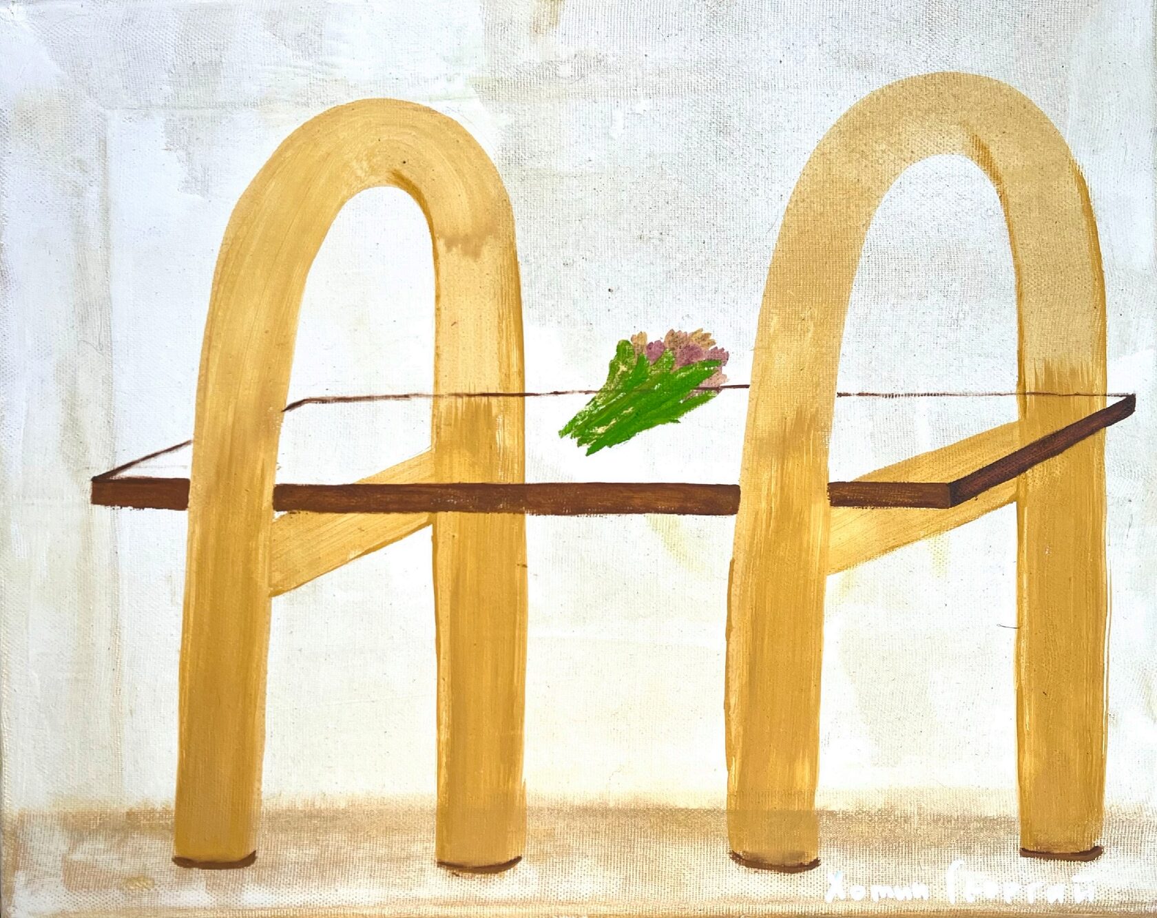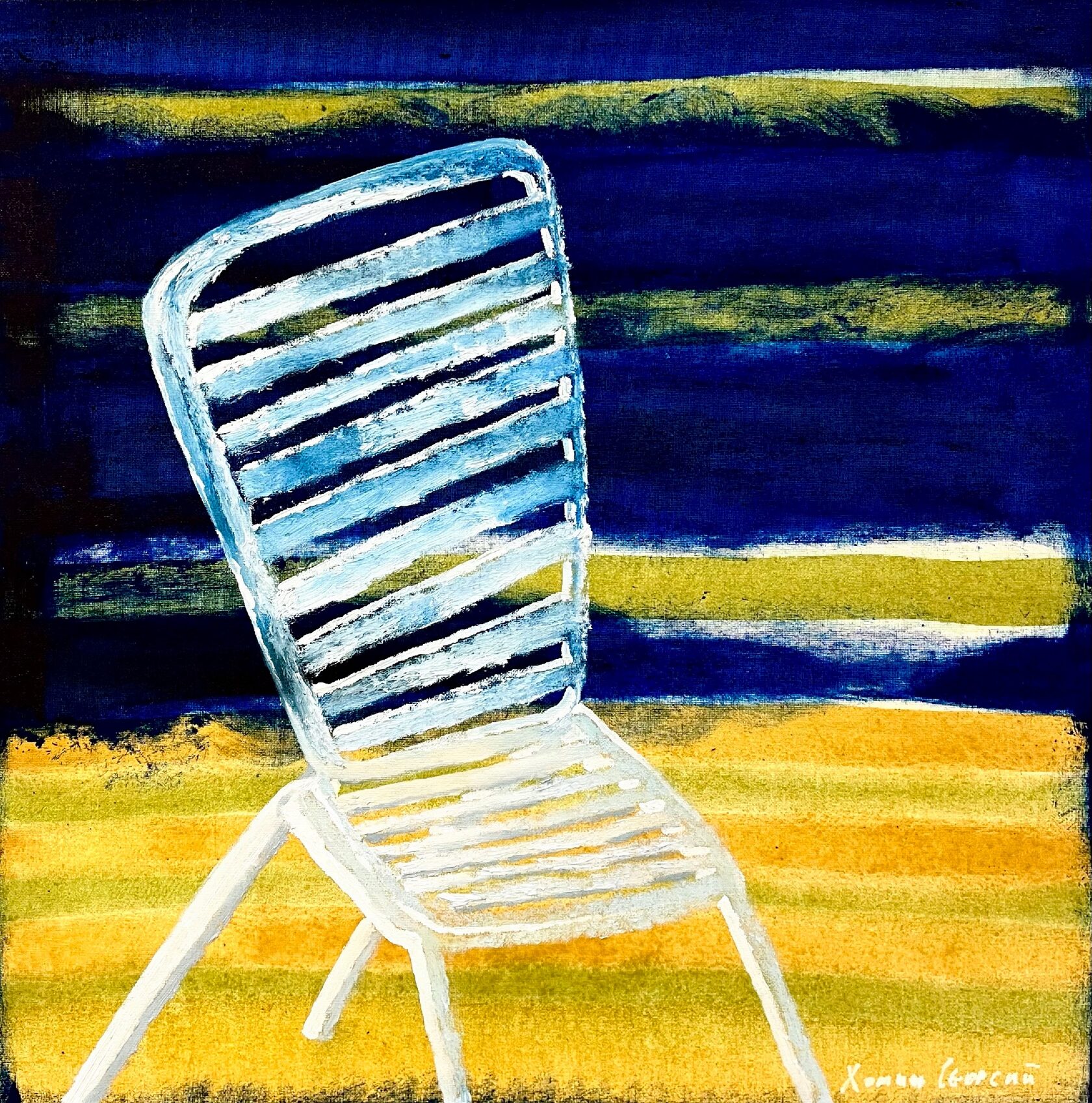 Гоша отталкивается от узнаваемых и понятных каждому образов — лодки, животные, стулья. Но предметы в его живописи — лишь повод начать разговор с цветом, фактурой, пятном, и становятся частью живописной композиции, где главное — не сюжет, а ощущения.