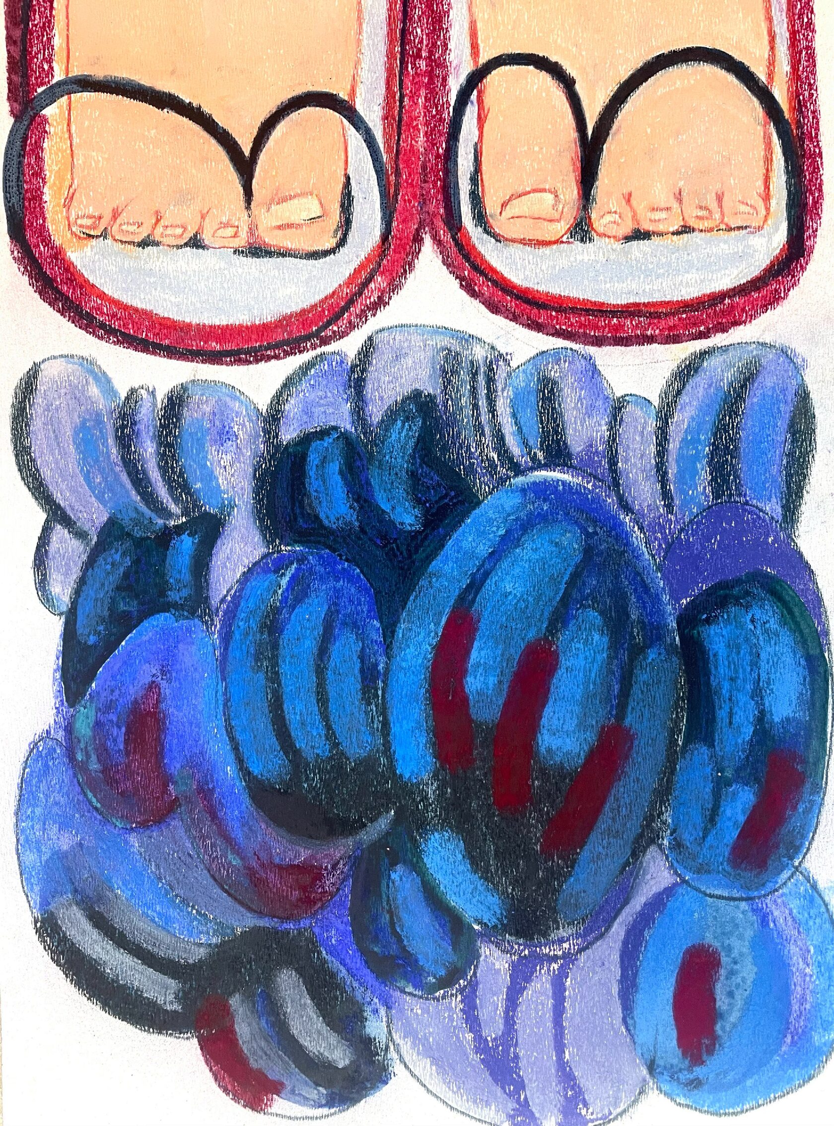 Для художника важна эмоциональная интонация. Каждая работа рождается не из формы, а из состояния: цвета становятся метафорами чувств, а композиции — отражением внутреннего мира. Это живопись, которая не стремится быть «про что-то» — она просто есть. Гоша предлагает говорить о вещах свободно, просто, не без иронии, и дать возможность зрителю не искать смыслы, а быть в моменте: смотреть, чувствовать и не бояться быть собой перед работой.